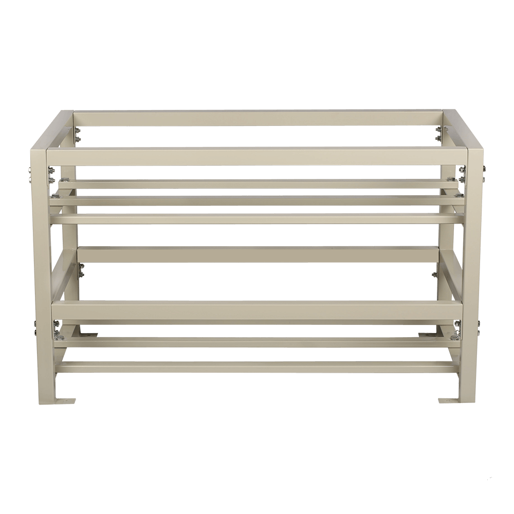 Стеллаж под аккумуляторы 8x200 представляют собой рамочную конструкцию, собираемую из стального профиля прямоугольной формы рассчитанную на восемь аккумуляторов емкостью не более 200Ач. Все составные части заводского изготовления. Конструкция рамы имеет кислото- и огнестойкое покрытие. Комплект включает в себя все необходимые детали для крепления, которые по своим размерам точно совпадают с заранее подготовленными отверстиями в рамах, продольных и соединительных балках для обеспечения устойчивости конструкции.