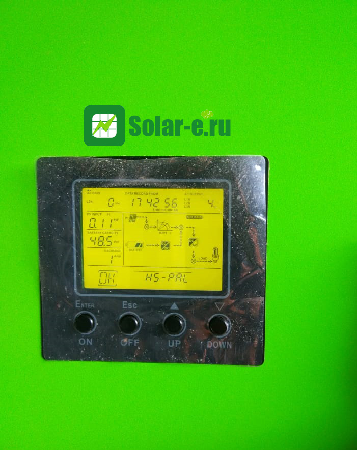 - Большой жидкокристаллический дисплей отображает всю основную информацию о работе системы солнечного электроснабжения