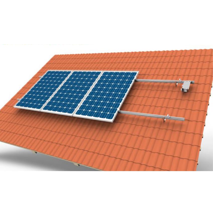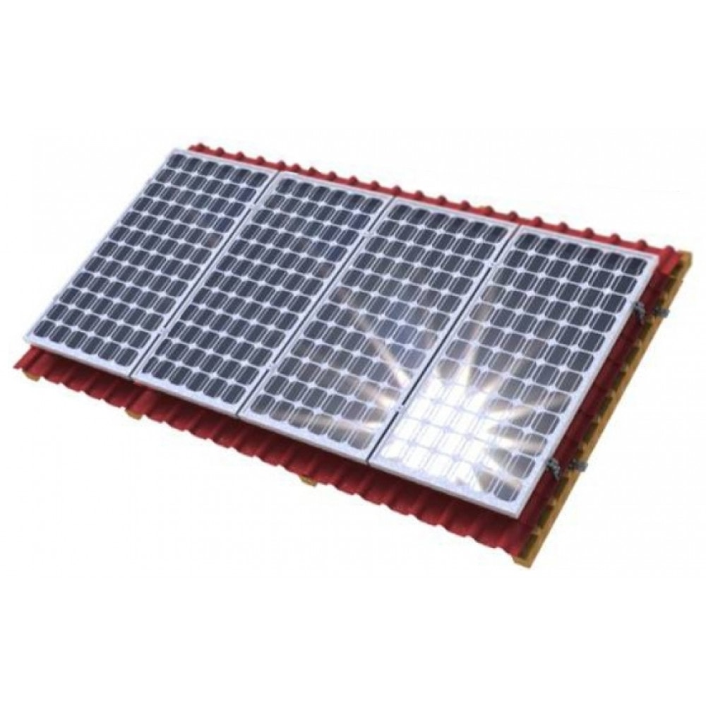 Данный комплект предназначен для монтажа солнечных батарей на плоской наклонной крыше (мягкая черепица), либо металлочерепице в два ряда.